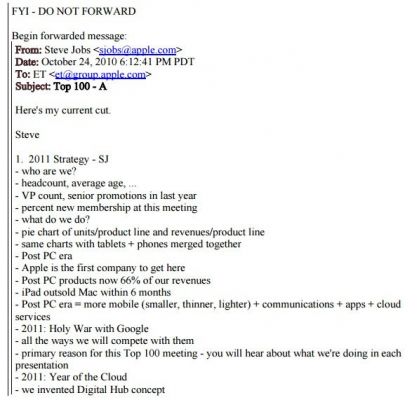 同样是在乔布斯的这封邮件中,他已经在里面谈到了关于 LTE 支持和 iPhone 5 硬件的问题,这封邮件的时间是 2010 年 10 月份,而 iPhone 5 则是在 2012 年发布,提前了整整两年。乔布斯还曾提到要发布 iPad 2 以保持领先竞争对手的优势。