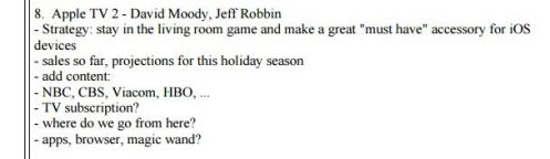 这就是乔布斯在邮件中提到的内容,我们可以看到苹果有意占领用户客厅,也想要丰富内容,给用户提供更多选择,并列出了潜在的合作伙伴名单,包括 NBC 和 CBS 等。